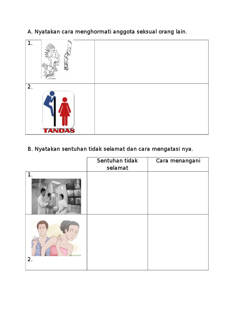 Perbezaan gambar murid perempuan dan murid lelaki 3. Contoh sentuhan tidak baik ialah di pukul atau di tolak. 1 sentuhan selamat contoh sentuhan selamat seperti memeluk menepuk di belakang dan merangkul bahu.