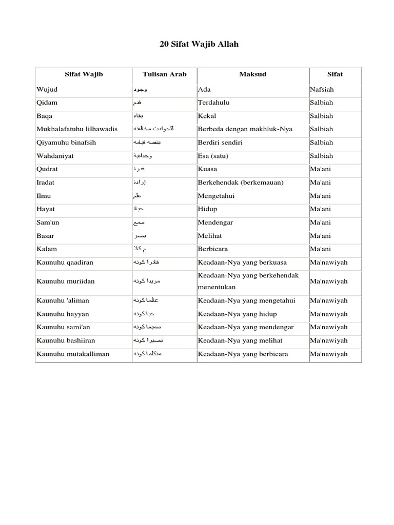 Sifat Wajib Dan Mustahil Bagi Allah Akidah Menurut Ajaran Nabi