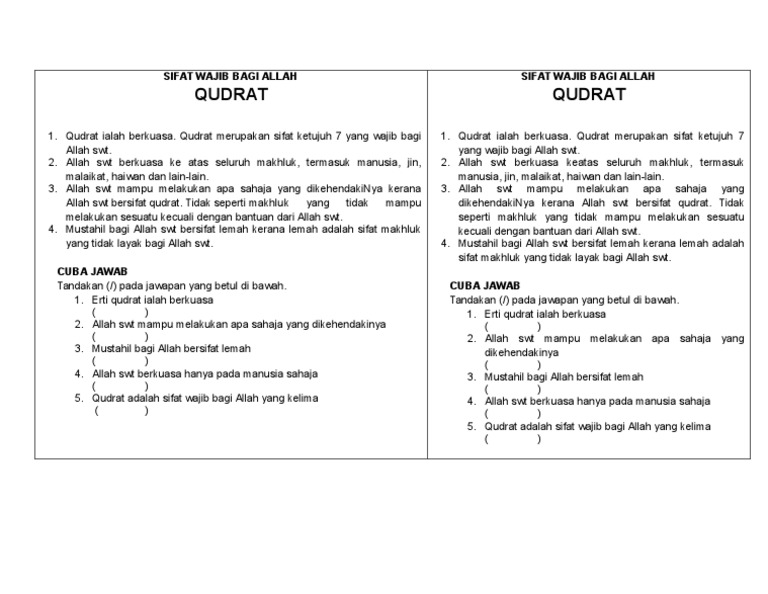 Sifat Yang Harus Bagi Allah 1 Page