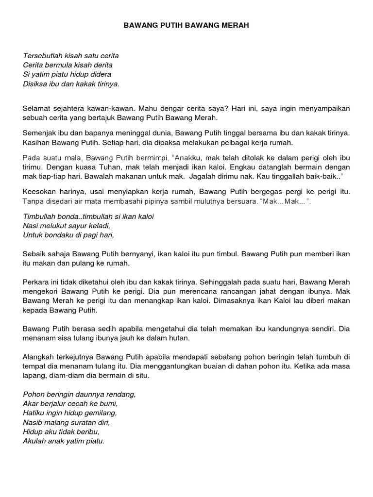 Naskah Drama Bawang Merah Bawang Putih Dalam Bahasa Inggris
