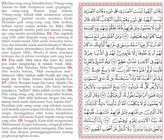 Al Baqarah Ayat 113 119 Hal 18 Quran Tajwid Dan Terjemahan