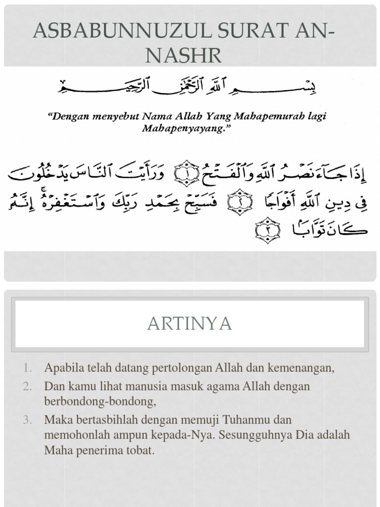 Surat An Nasr Beserta Artinya Tafsir Dan Asbabun Nuzul