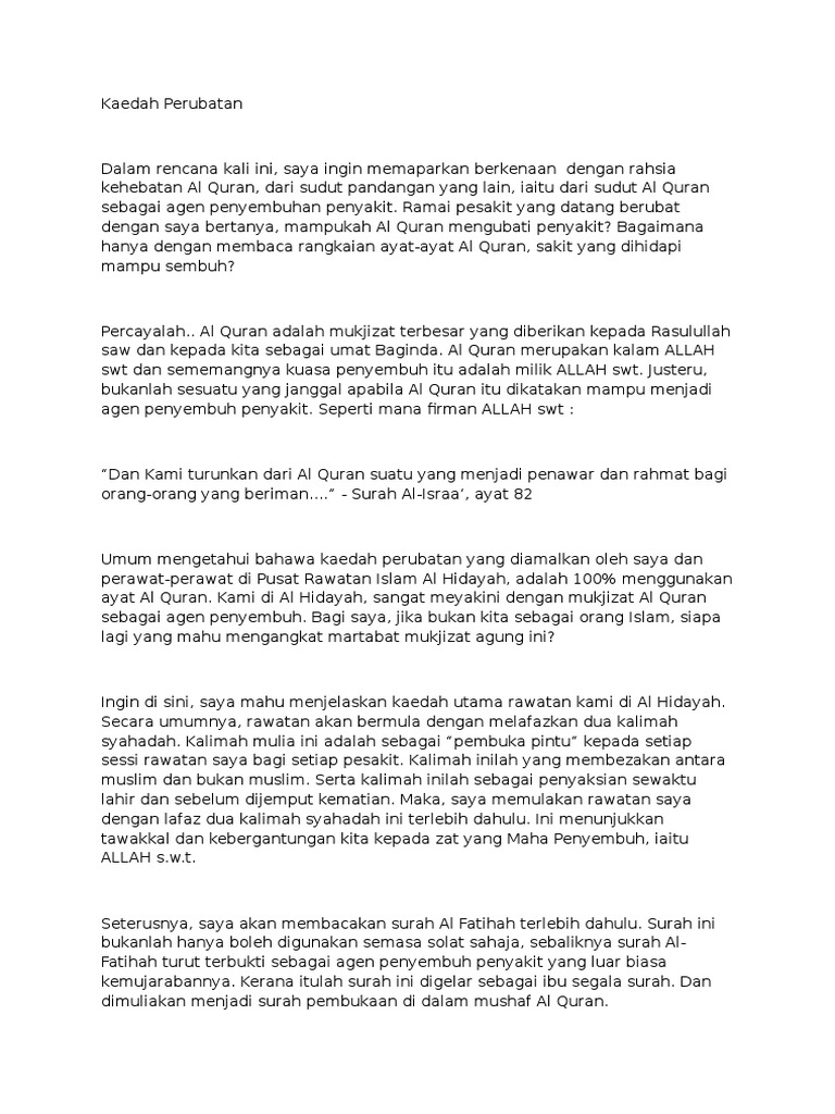 Kaedah Rawatan Menggunakan Al Quran