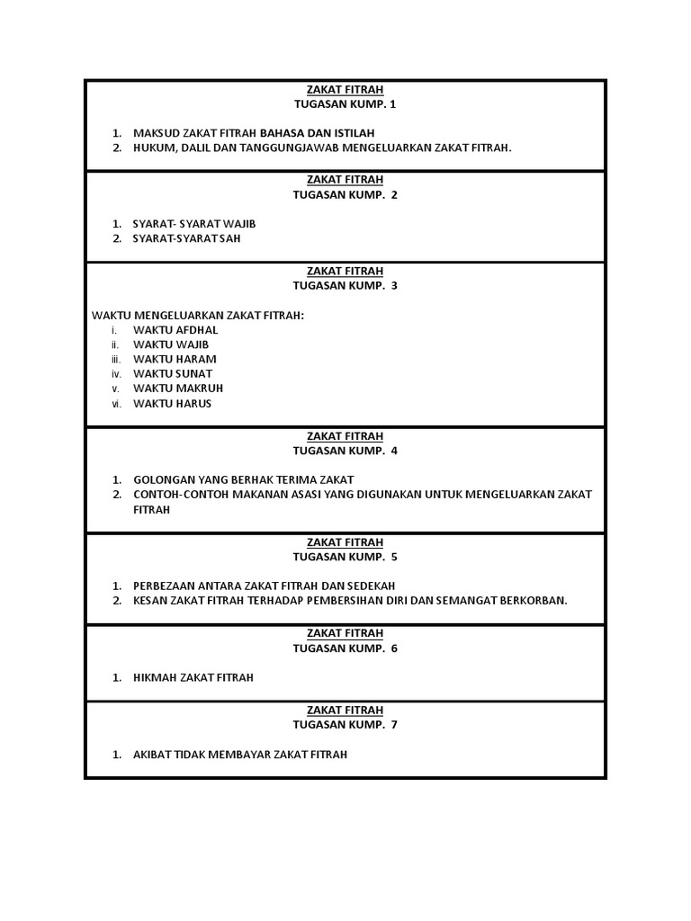 Zakat Fitrah Tugasan Kump 1 I Ii Iii Iv V Vi