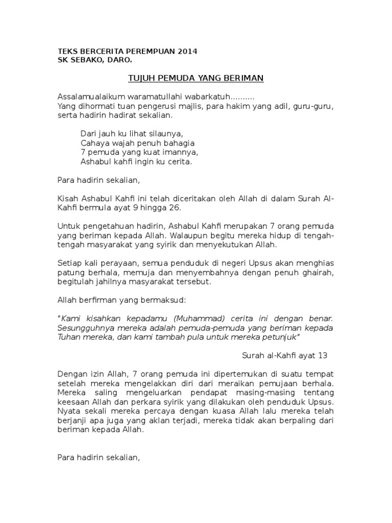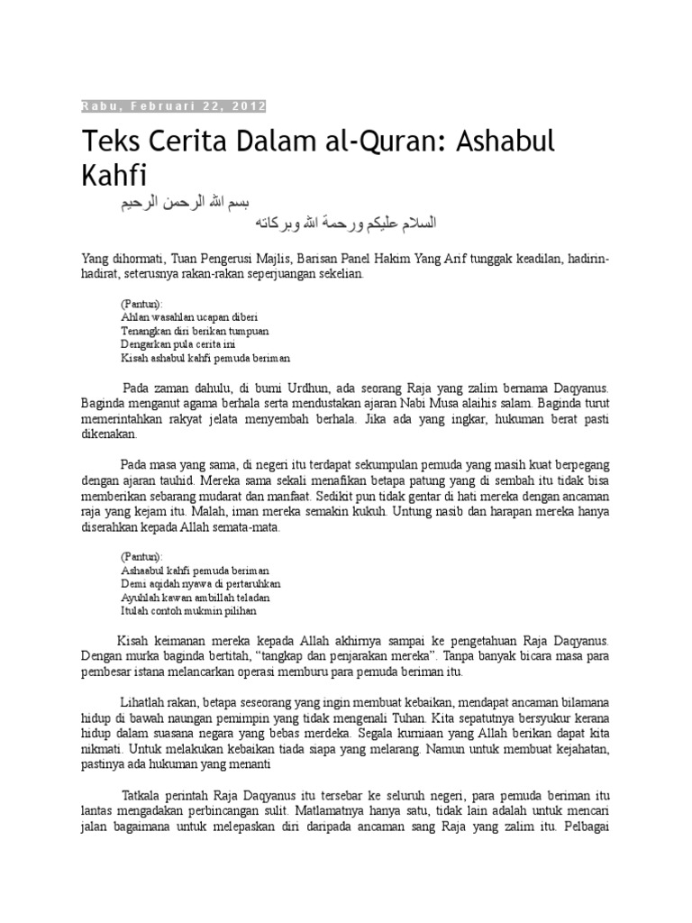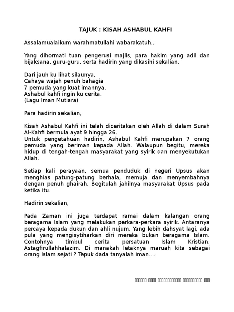 Teks Bercerita Ashabul Kahfi Doc Kisah Ashabul Kahfi Assalamualaikum Wbh Yang Dihormati Tuan Pengerusi Majlis Para Hakim Yang Adil Guru Guru Serta Course Hero
