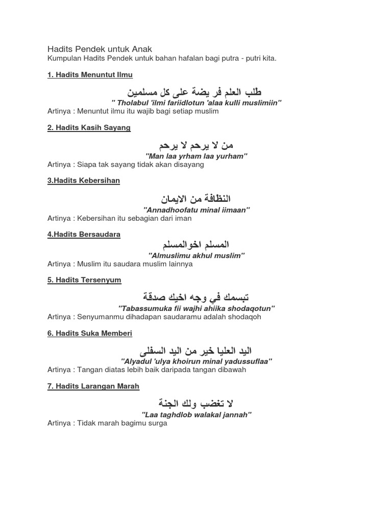 Hadits Pendek Untuk Anak