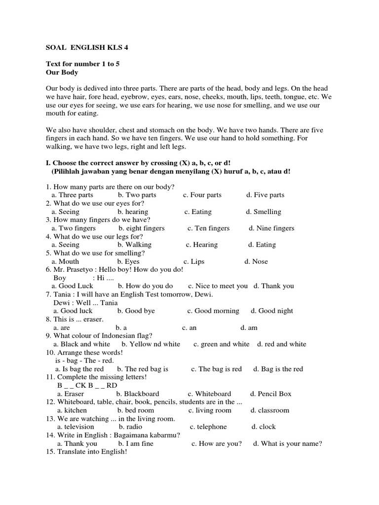 Soal English Kls 4