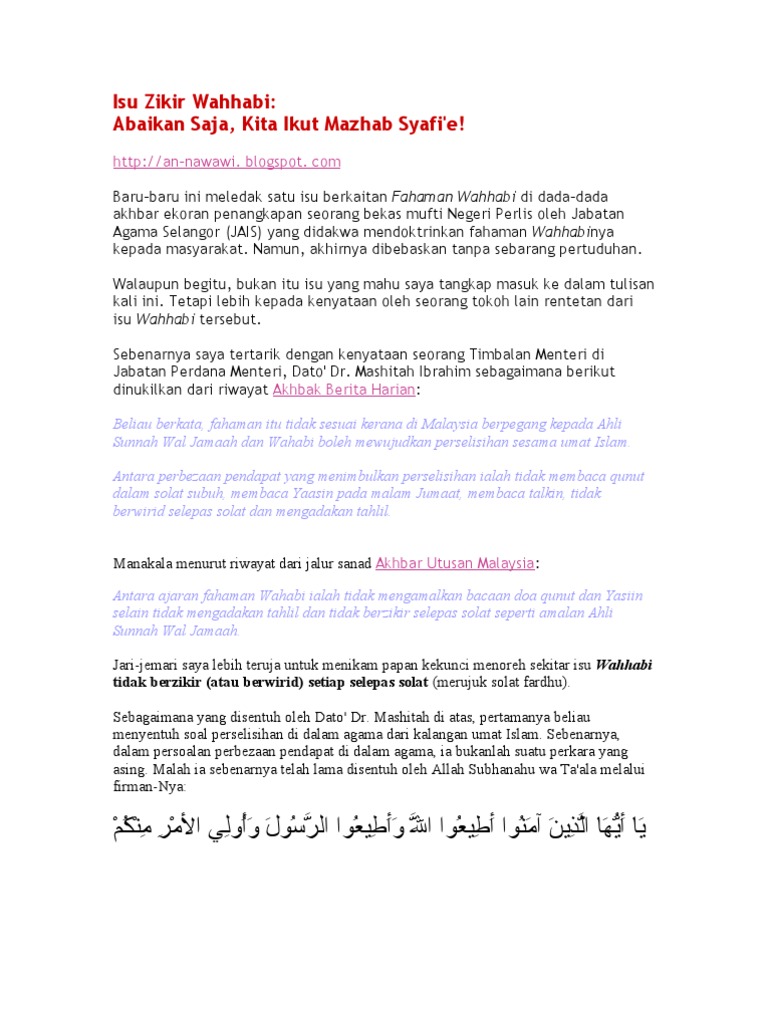 Isu Zikir Wahhabi Abaikan Saja Kita Ikut Mazhab Syafi E